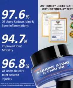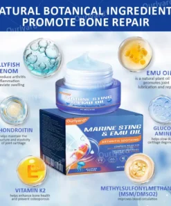 Emu oil promotes healing by deeply nourishing and repairing damaged tissues, cartilage, and bones. It helps stimulate blood flow and accelerate recovery at the cellular level, ensuring that your joints begin to regenerate and regain strength. Marine Sting™ extract further enhances tissue repair by reducing inflammation and promoting natural healing processes, allowing for faster regeneration and improved joint function.