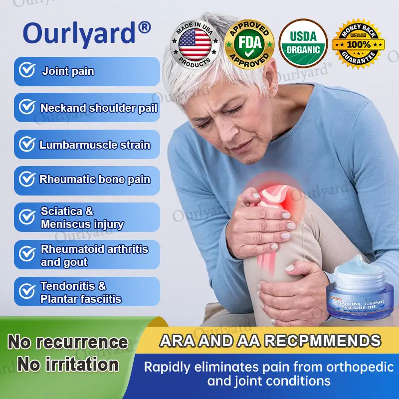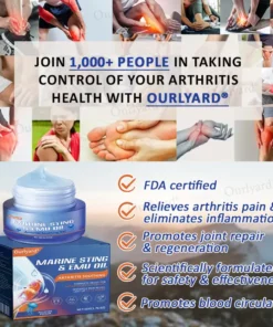 Backed by the professional recommendation of the American College of Rheumatology (ACR) and certification by the U.S. Food and Drug Administration (FDA), Ourlyard® offers a natural, safe, and effective solution for arthritis relief, making it a trusted choice. Unlike many traditional products that rely on medication or steroid-based ingredients, Ourlyard® uses natural marine sting and emu oil to effectively relieve pain and inflammation caused by arthritis, while avoiding the risks of medication side effects. Many users have reported significant pain reduction and improved mobility after using Ourlyard®, eliminating the need for medication or invasive treatments. Its unique deep-penetrating formula quickly soothes joint discomfort, restoring joint flexibility and allowing users to regain a comfortable lifestyle. By choosing Ourlyard®, you’re not only choosing a high-quality product backed by authoritative certification but also a natural, safe, and side-effect-free joint care solution—ensuring that every user can use it with confidence and peace of mind.
