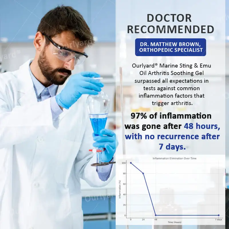 “I have seen impressive results with Ourlyard® Marine Sting & Emu Oil Arthritis Soothing Gel. In tests against common inflammation factors that trigger arthritis, this product surpassed all expectations.