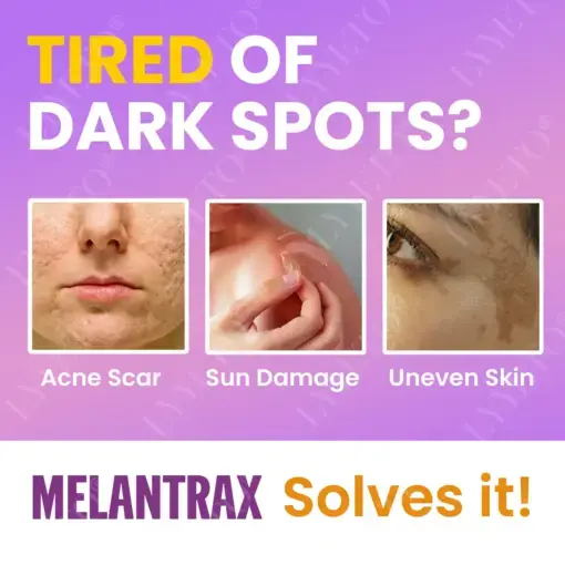 Whether it’s stubborn acne scars, sun damage, or uneven skin tone, MelantraX is your answer to clearer, brighter skin. Our advanced formula targets all types of hyperpigmentation at the source, breaking down excess melanin and promoting healthy cell renewal.