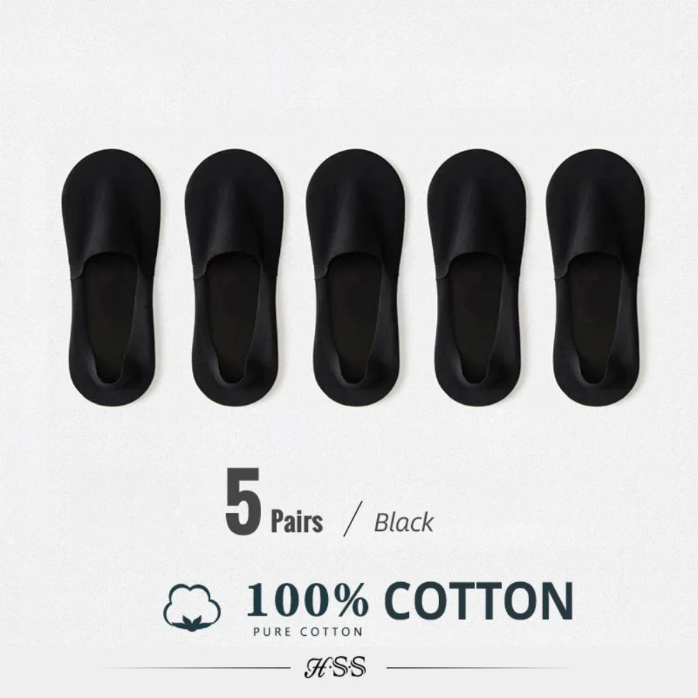 HSS 5 Pairs/Lot Men’s Boat Socks 100% Cotton Deodorant Sweat Absorption Summer Sock Thin Breathable Silicone Non-slip Silk Socks