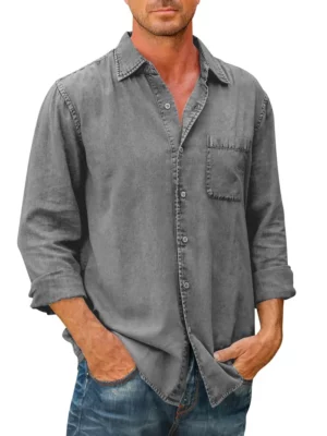 - Name: Mens Denim Long Sleeve Button Down Shirt