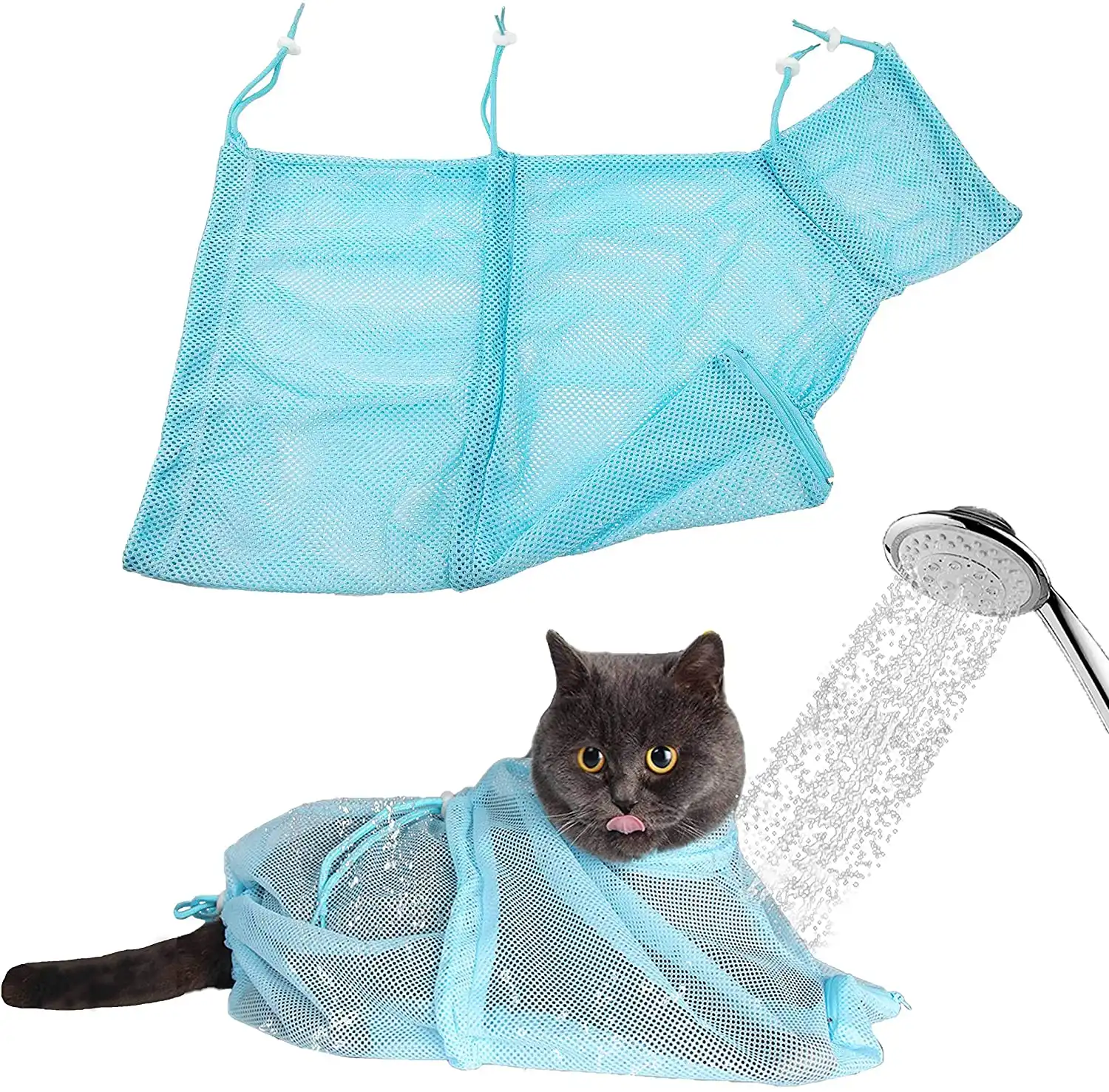 Mesh design, made of high quality polyester, allowing water to flow in and out while bathing. Grooming cats, bathing, clipping nails, collecting ears, cleaning teeth, feeding, using eye drops, giving medicine and vaccination etc. It is suitable for