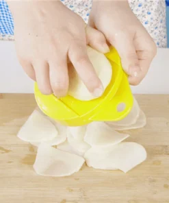 Slice potatoes or other vegetables. Please try to keep the slice thickness consistent.
