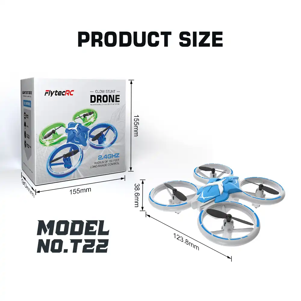 The drone will glow in the dark, show you the correct flight direction and give you a special look. High-low speed modes can be switched by the transmitter. 4 safety guard protected propellers prevent collision and damage.