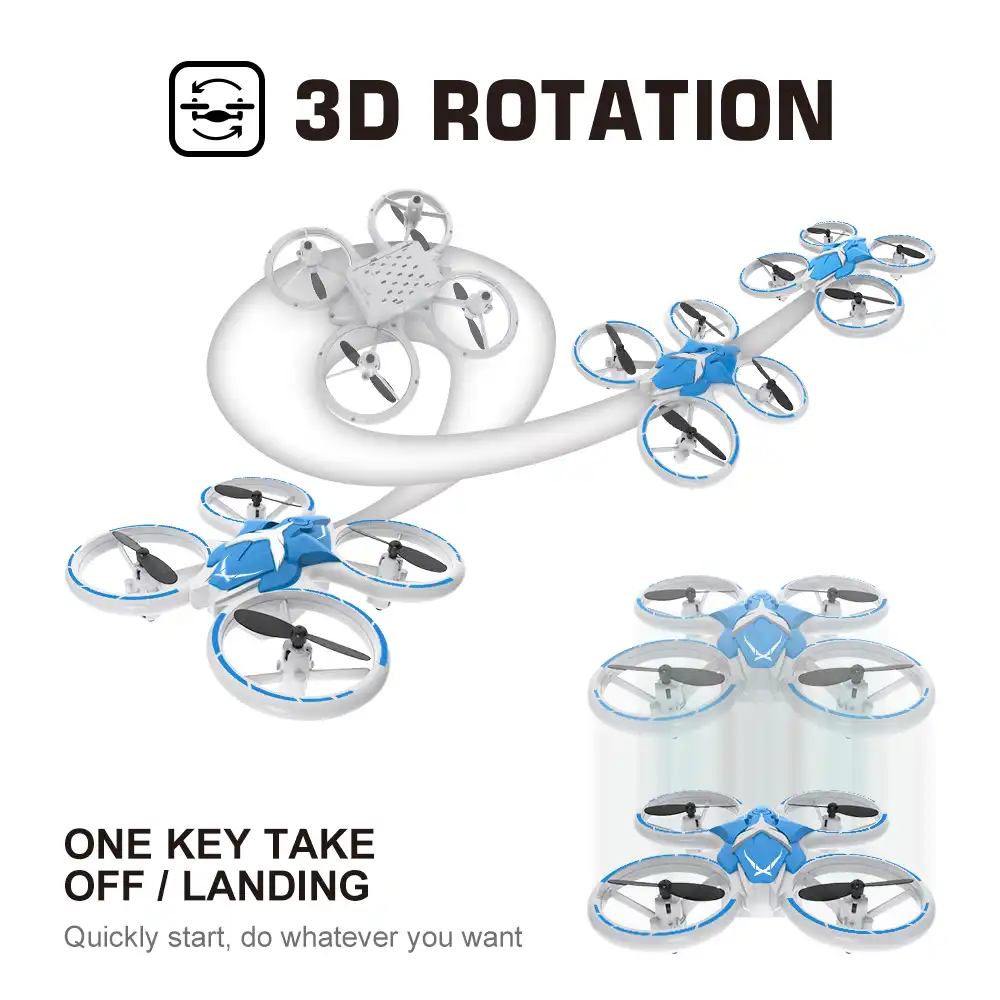 Start headless mode when eyes cannot determine the direction of the drone. In headless mode, forward whatever direction the pilot is facing. Other features such as 3D 360° flip and roll, fixed-end rotation, one-key return, one-button landing make your operation experience highly intuitive and fun.