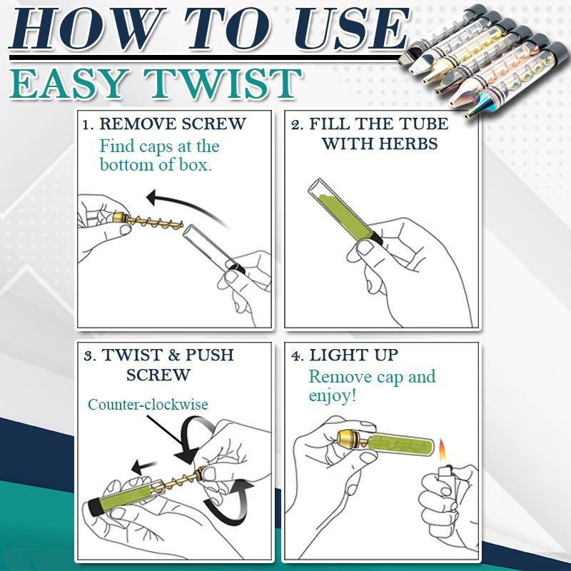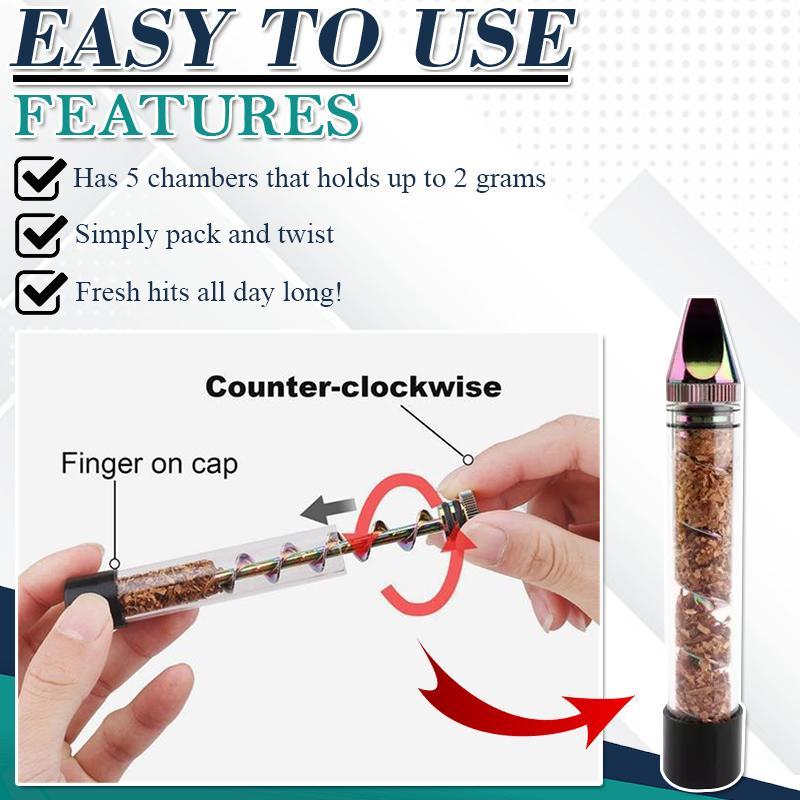 Easy Twist – Twist the screw to push the tobacco into its blunt end. Turn counterclockwise to push the ash out of the tube.