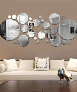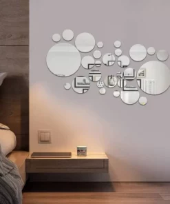 26 PCs 3D Acrylic Mirror Wall Sticker, round Mirror, DIY Bedroom, Bathroom and TV Background Room Sticker Wall Decoration