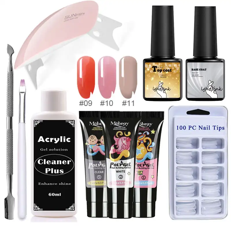 10pcs/Kit Poly Gel Set Nails Acryl Builder Gel Kit Nail Polygel Kits Quick Building Primer Top Coat Extension Gel UV Lacquer Brush Tips