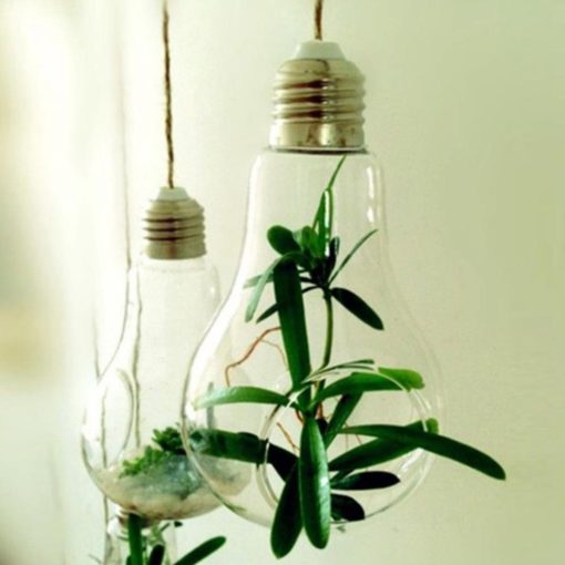 Plant tiny cacti or succulents in your glass bulb planter and hang them in a corner for the perfect burst of color. They are so light and small that they can be hung almost anywhere you need an eye-catching display.