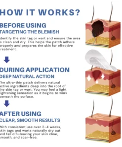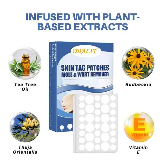 Each ultra-thin patch is infused with powerful plant-based ingredients—like tea tree oil and Thuja Orientalis—designed to penetrate deep into the root of skin tags and blemishes. This gentle, botanical approach helps dry out and remove skin imperfections naturally and painlessly.