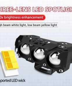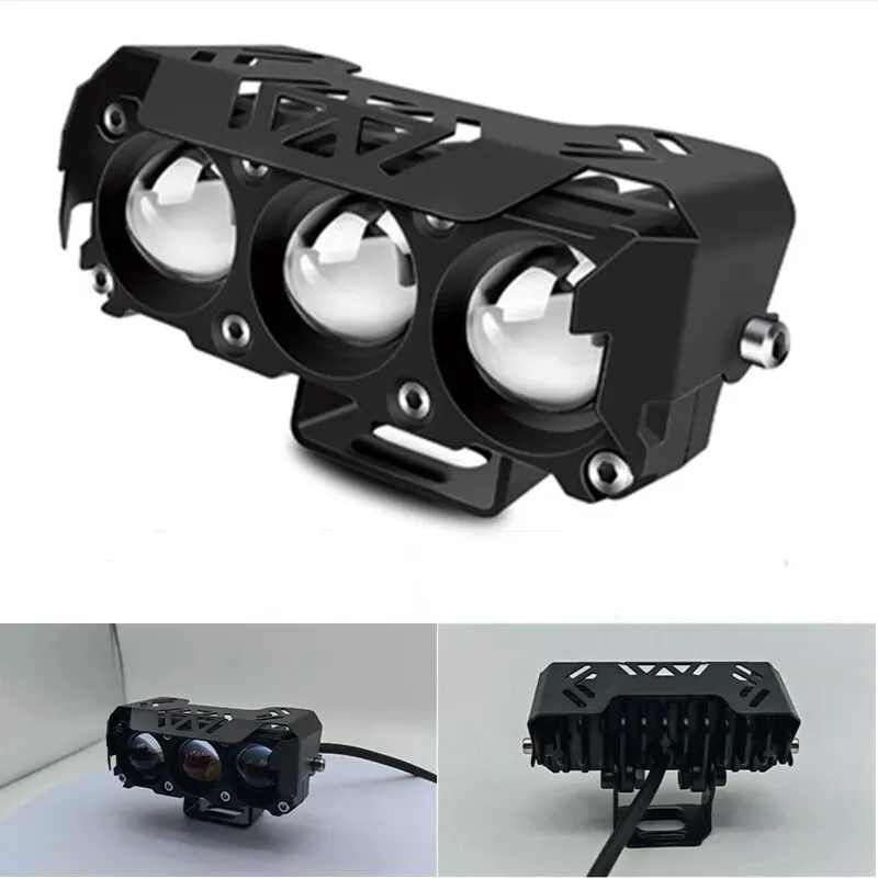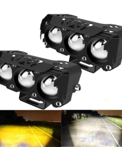 Motorcycle LED Spotlight Dual Color Hi/Low Beam Fog Lamps for Car Trucks SUV UTV 12V 24VMini Lens Headlight Driving Light