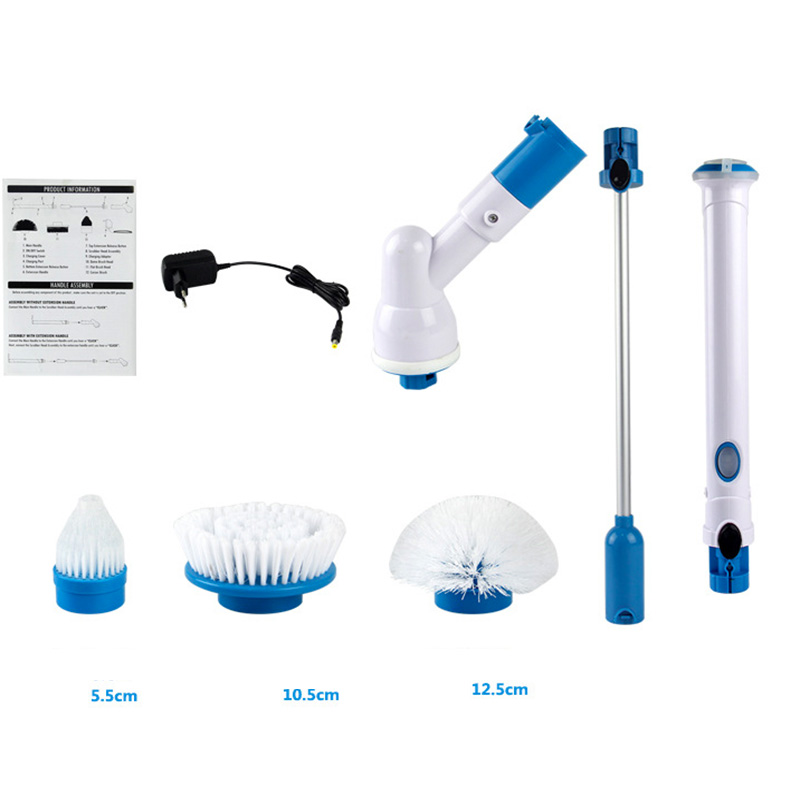 Package Includes: 1 x Electric Spinning Scrubber Body, 3 x Scrubbing Heads (Multi-Purpose Brush, Corner Brush, Extra-Wide Flat Brush)
