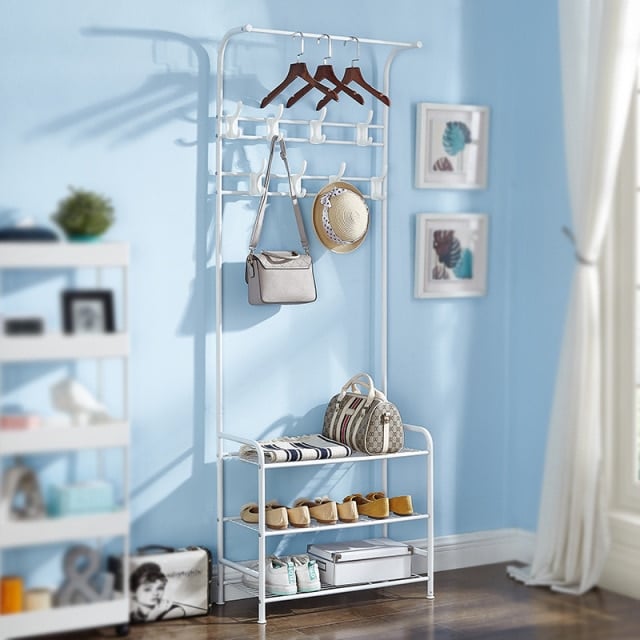 Package includes: 1 x Multifunction 3 Tier Coat Rack Floor Standing Wardrobe