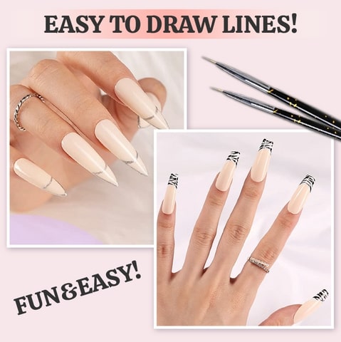 This Nail Art Liner Brush Set comes with 3 liner brushes with different size heads: 7mm, 9mm and 11mm. They are perfect for nail liners and drawing patterns, make your nails more beautiful and attractive! The handle is made of durable materials that make them useful. They also have suitable flexibility and are not easy to lose bristles.