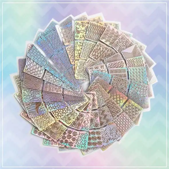 You get a huge assortment of stencils. They stick on well and peel off easily when you are finished without ruining your base polish. There is a good variety of stencils to choose from. I’m loving these!