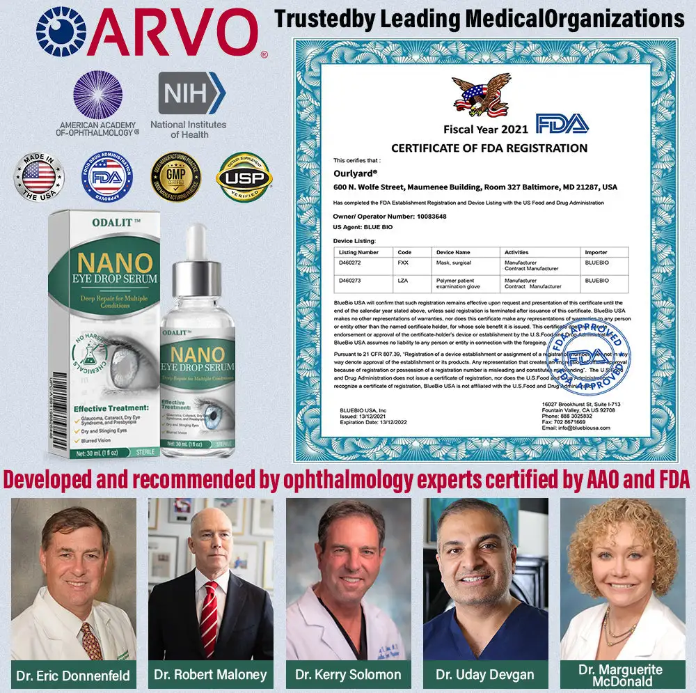 As the first FDA-approved eye drops for age-related vision loss, ODALIT™ uses advanced nano-carrier technology to encapsulate active ingredients in nanoparticles, ensuring precise penetration and targeted action on the deep tissues of the eye, significantly enhancing the therapeutic effect.