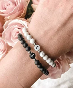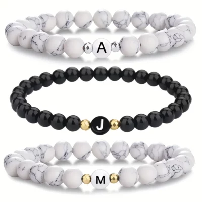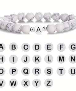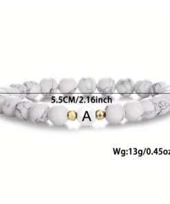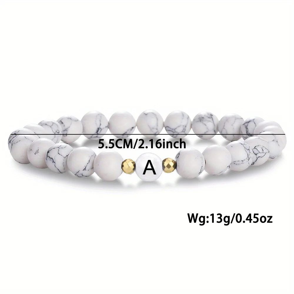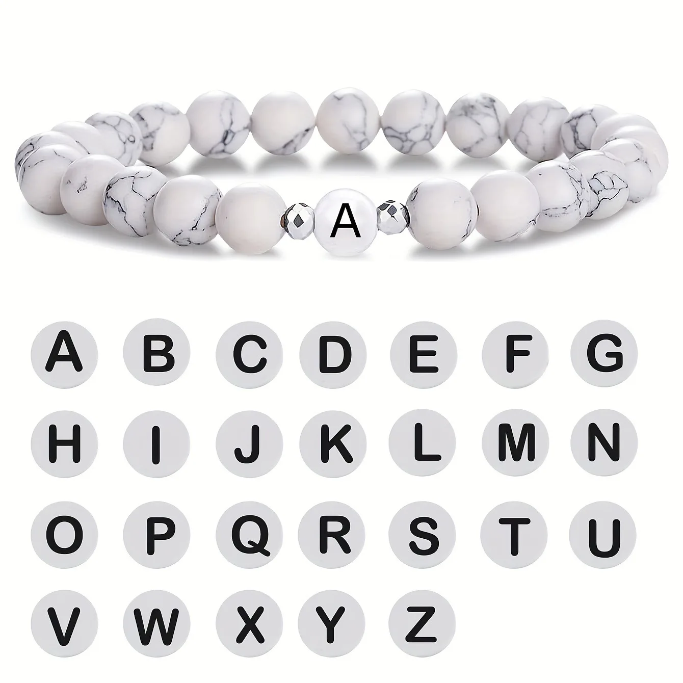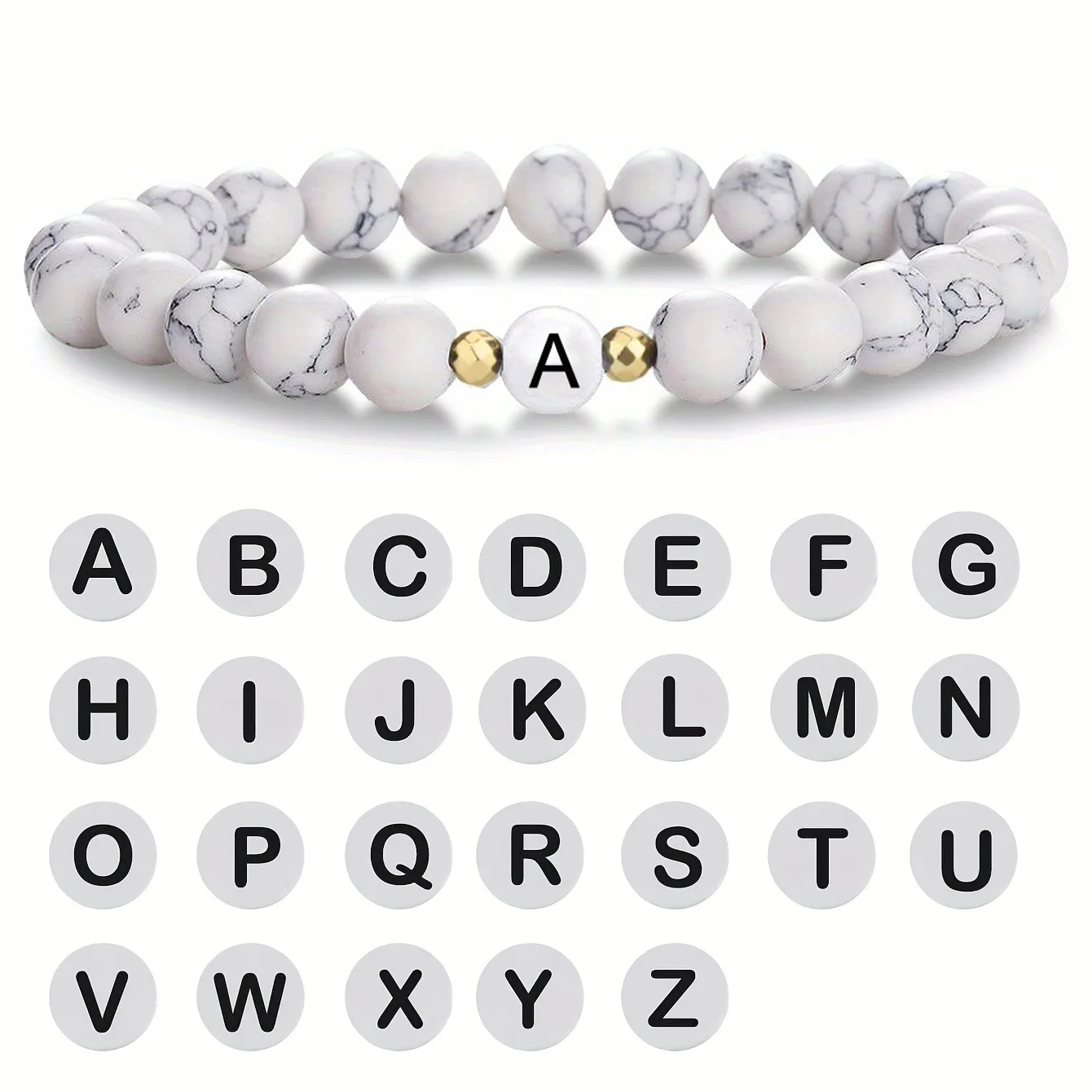 FTCY 26 Letters Natural Stone Bracelet For Women Men Personalized Initials Fashion Beading Bangle Couple’s Hand Jewelry Gifts