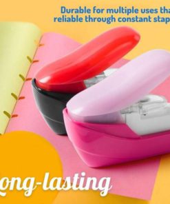 I am a middle school teacher and my students accidentally broke another stapler. I came across this one while shopping for a replacement! I love that my students can’t remove staples to play with! I passed it around my classes and they all loved taking a turn trying the new stapler! It actually pierces a little hole, folds the piece back, and tucks it through a slot! It’s pretty impressive!