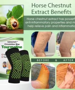 Discover the advantages of NESLEMY™ Circulation Max Tourmaline Fiber Leg Sleeves, crafted with cutting-edge tourmaline fibers that provide far infrared therapy to boost blood circulation and improve metabolic function. Enhanced with horse chestnut extract, these sleeves work together to fortify vein walls and relieve discomfort, effectively minimizing swelling for healthier legs. Feel revitalized and comfortable as these leg sleeves support your active lifestyle, helping you stay on your feet longer and feel your absolute best.
