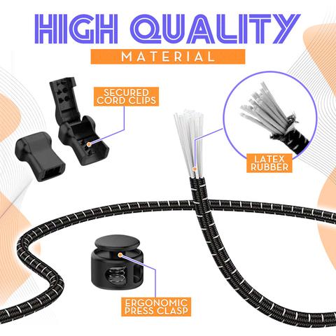 Shoe laces with ergonomic design. Crafted with high elastic spring buckles. Ensure the tension and tightness of the laces, firm and durable and reusable.
