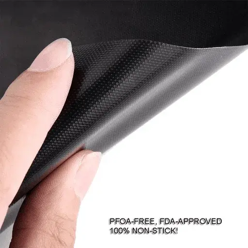 It has passed LFGB food-grade certification, which is harmless to food and makes your diet healthier.Thicker grill mats dose not mean better. We have tested it numerous times to get the best thickness we can get at the moment, and to ensure enough heat resistance so that the food you grill will still tastes better.