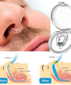 1. Before sleeping, please fully insert the spherical parts at both ends of the snoring device into the nostrils, with the raised positioning edge pressed tightly above the lips.