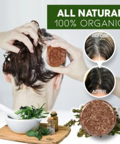 Restore your natural hair color, from the gray hair to a vivid dark color, regain your confidence back by looking and feeling younger again with the all-new Organic Darkening Shampoo Bar. Gently massage the shampoo bar into scalp with a circular motion.