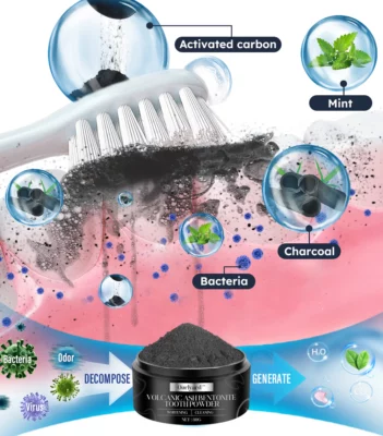 - Bamboo Charcoal: Its porous structure allows it to cleanse teeth, remove impurities, and create a healthier oral environment by reducing bacterial growth. Ourlyard™ Volcanic Ash Bentonite Tooth Powder