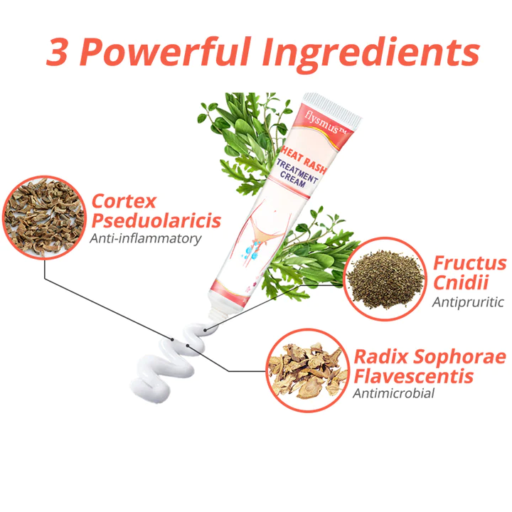 Fructus cnidii has anti-inflammatory and antipruritic properties, which can help reduce inflammation and itching and prevent infection in the affected area. It works by inhibiting the release of histamine, a chemical that triggers the allergic response and causes itching and inflammation. Plus, it can help to alleviate the symptoms of heat rash, such as itching and redness, while also preventing further complications from developing. Oveallgo™ Heat Rash Treatment Cream