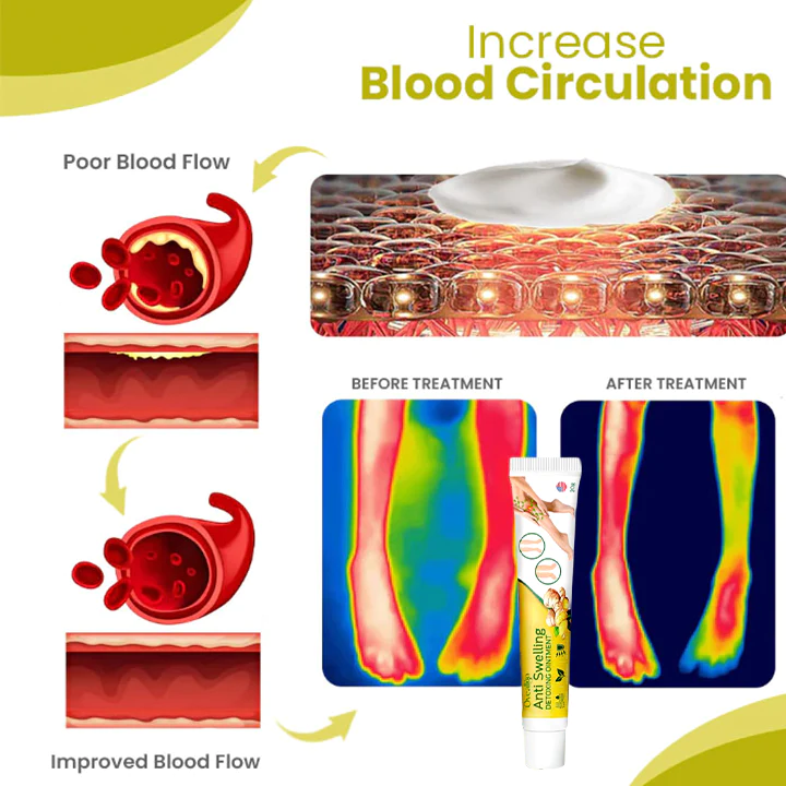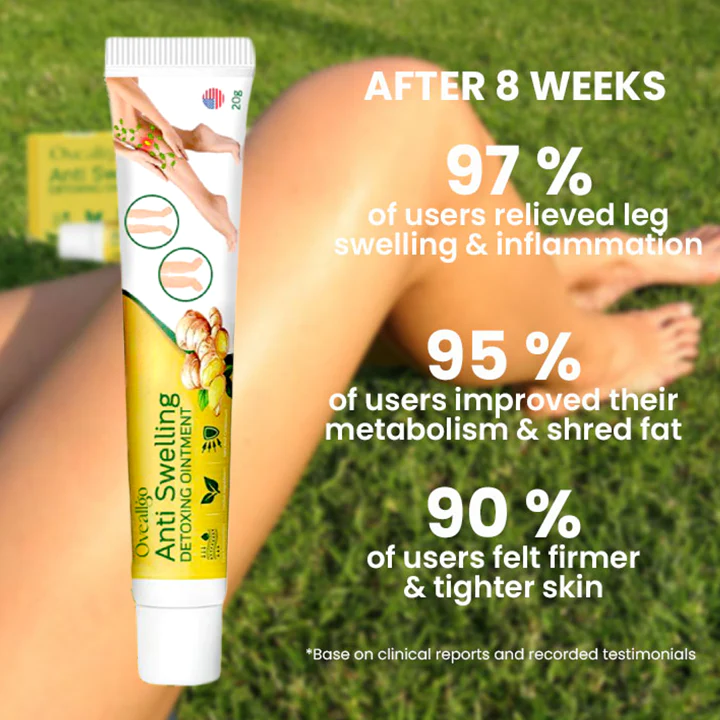 Oveallgo™ SwellAway Leg Comfort Ginger Ointment is a topical treatment that uses ginger extracts and to help clear toxins from the lymphatic system. When you’re dehydrated, or if you have an infection, your lymph isn’t working properly and can’t remove these fluids. This can cause swelling in your legs and feet, as well as heaviness in your arms and hands.Oveallgo™ SwellAway Leg Comfort Ginger Ointment helps restore the flow of lymph throughout your body so that you can feel better.