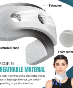 - Place the Painkil™ Neck Brace around your neck, ensuring the contoured memory foam rests comfortably against your skin.