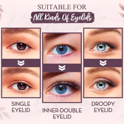 No need to suffer pain and large cost, the Palp Lifting Magic Eyelid Lifters can help you create a natural double eyelid, they are good self-adhesive and can naturally quickly lift your eyelids and are easy to cover with makeup, perfect for hooded, droopy, uneven or mono eyelids.