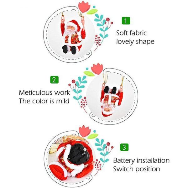 Parachute Santa Decorating Gift is hovering in the air. When turning the switch, Santa Claus flips a hula hoop, flies with a parachute, dances to the music. Exquisite hanging decorations will increase the festive atmosphere of Christmas.