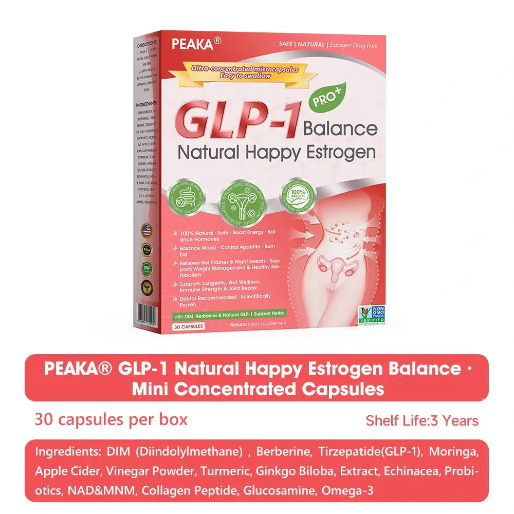 PEAKA® GLP-1 Natural Happy Estrogen Balance · Double-Layer Nanoliposome Microcapsules can significantly improve obesity, menopause symptoms, and other health issues within just 7 days.