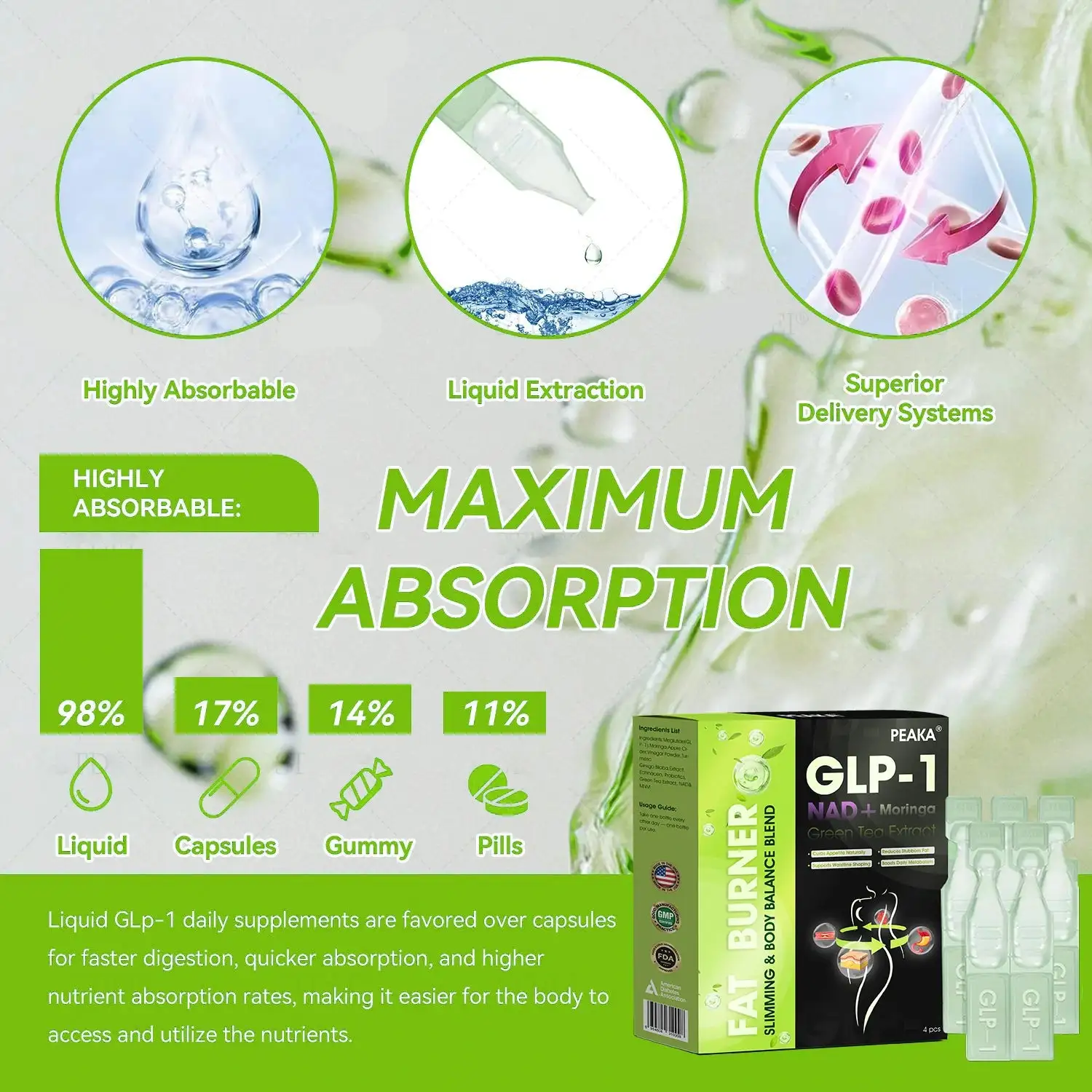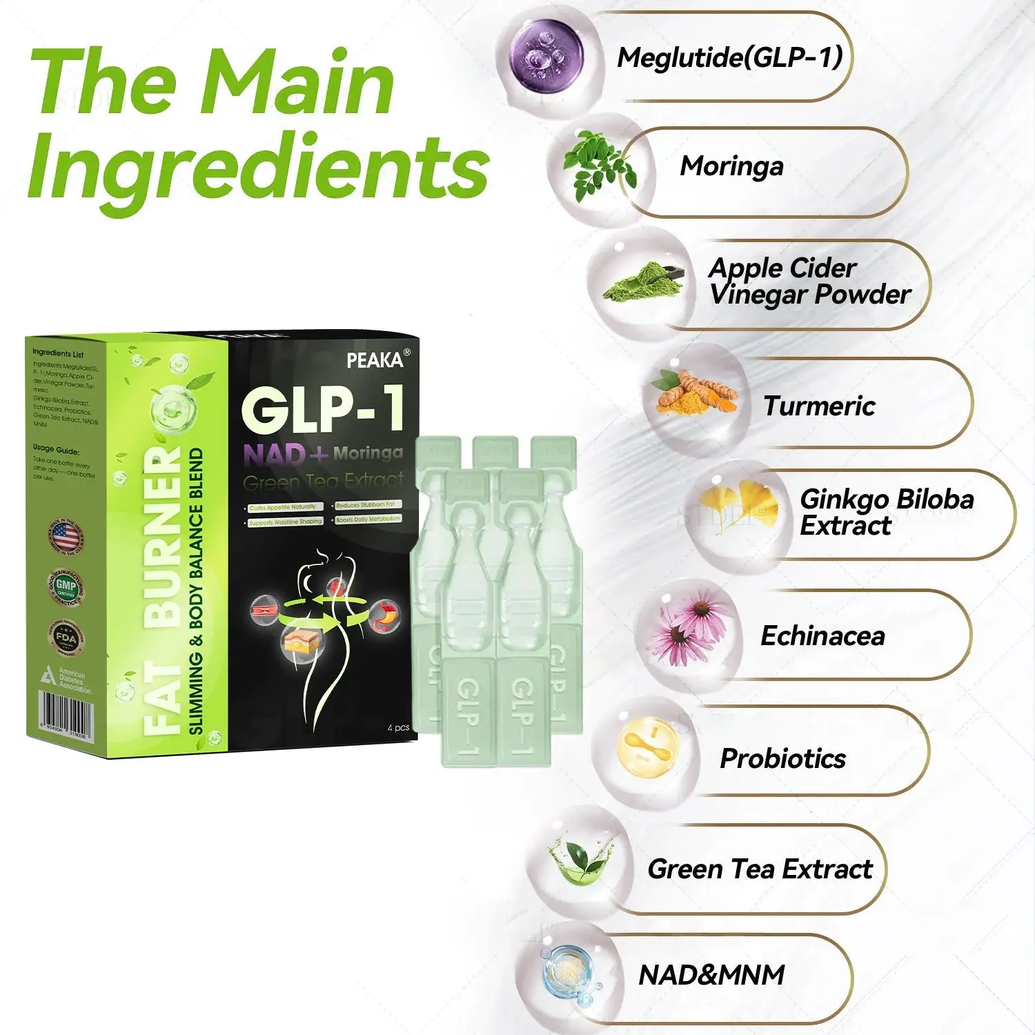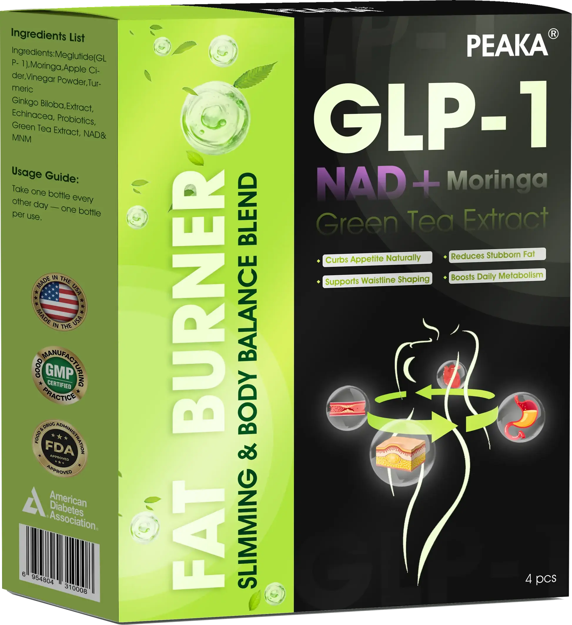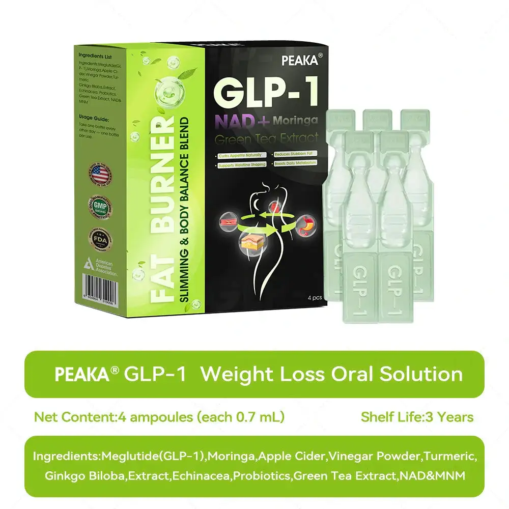 PEAKA® GLP-1 Weight Loss Oral Liquid, developed by a team of over 30 metabolic health experts affiliated with Harvard Medical researchers over 20 years of clinical insights, combines Meglutide with powerful herbal ingredients to boost metabolism, accelerate fat burning, and support digestive and lymphatic health.