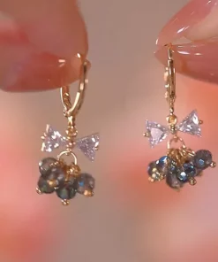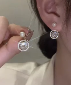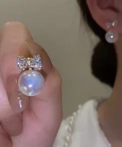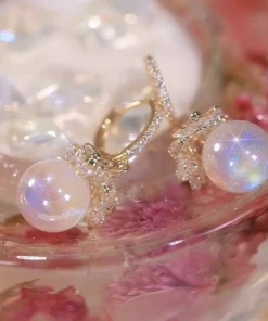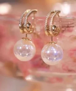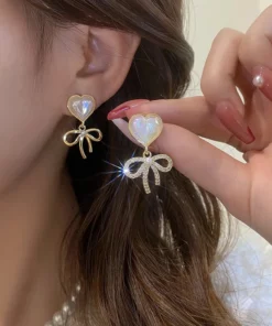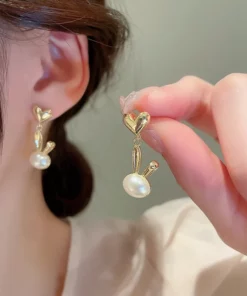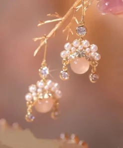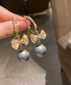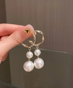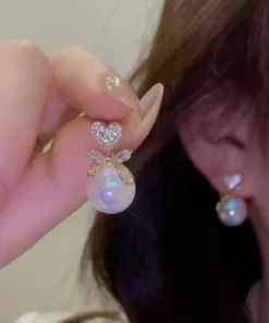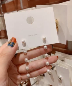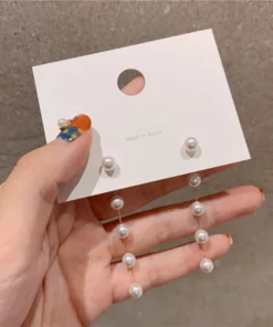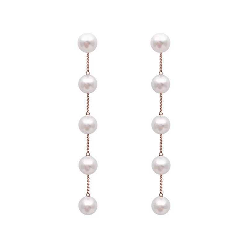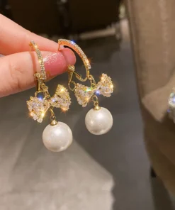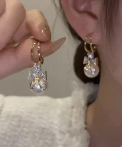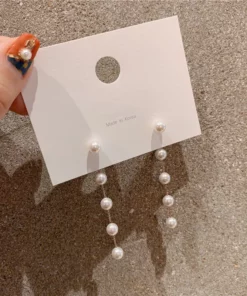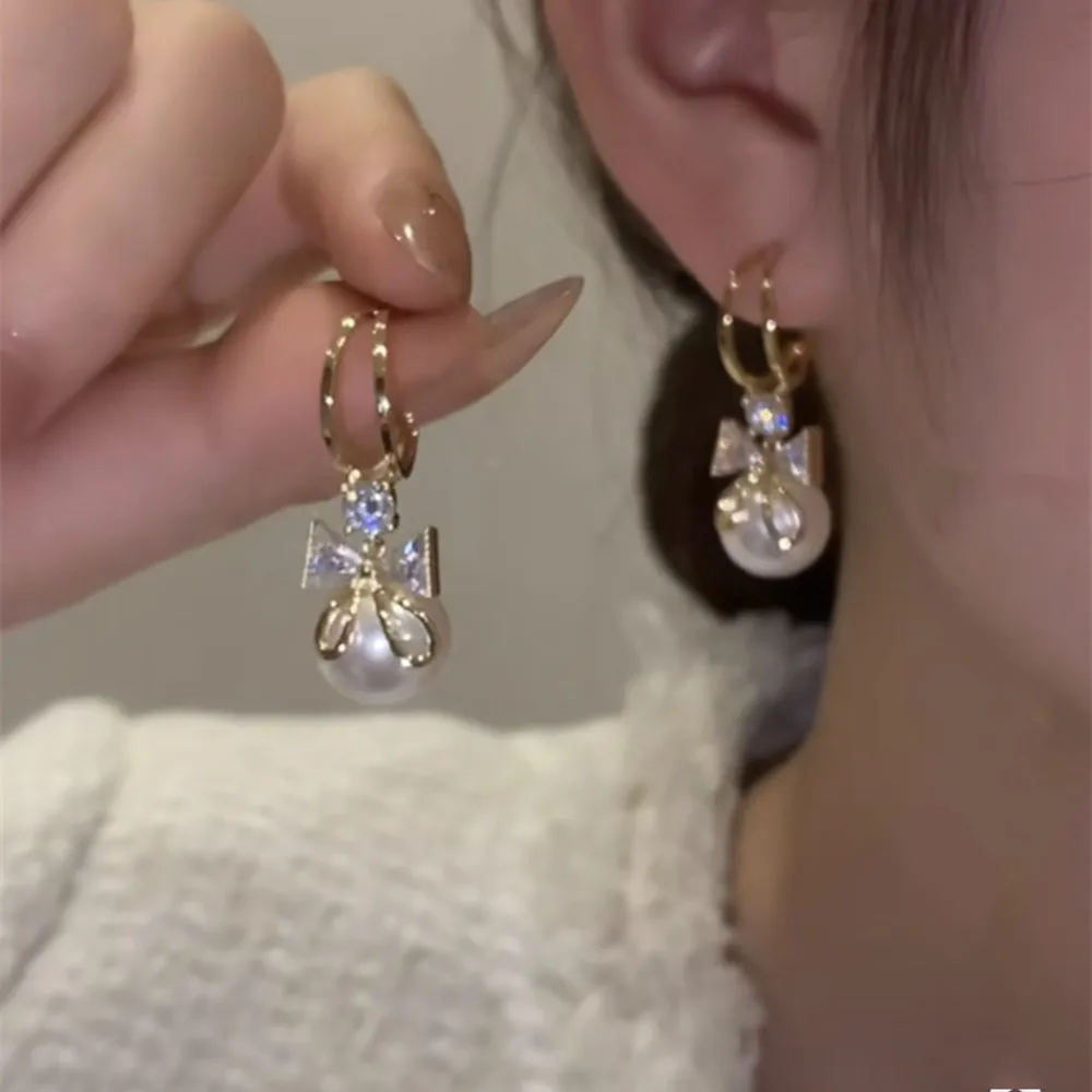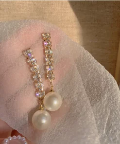 New Trend Simulation Pearl Long Earrings Women’s Flower Rhinestone Wedding Pendant Earrings Fashion Korean Jewelry Earrings