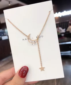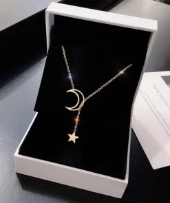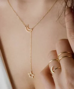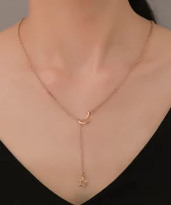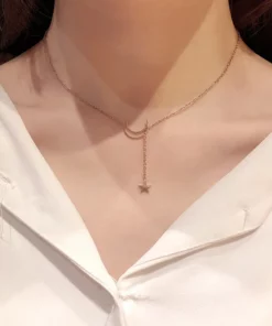 New Simple Moon Star Pendant Choker Necklace Simple Gold Color Alloy Charm Chain Collares Necklace For Women Party Jewelry