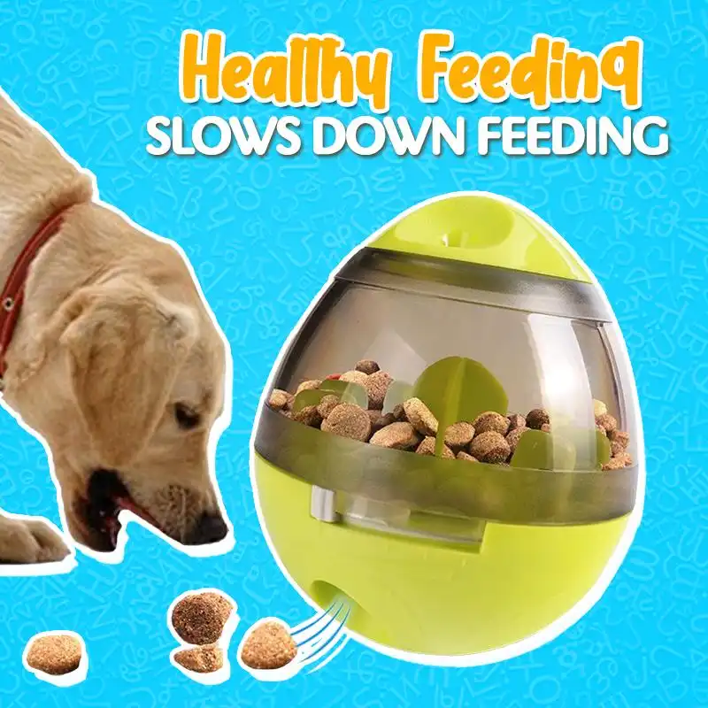 Okay, first i want to say we got a 7 week old choc. Lab for Easter he gonbled food down so fast because he was use to fighting his siblings for food and puppy just don’t understand so i figured i would look up a activity bowl to help him slow down and i came upon this little gadget. It hold about 3/4 cup of dry food or treats.. and it has 4 sets on it.. you can close it all the way open in a small amount for small food or slower food coming out.. then you can have it open have way or all the way.. my lab loves it and he still uses it at 11 weeks.. he caught on with with first use, and it has tubles down basement steps, been tooking outside by the pup, its durable and i would recommend this feeder to anyone who want to keep their fur friend busy or slow down their eating