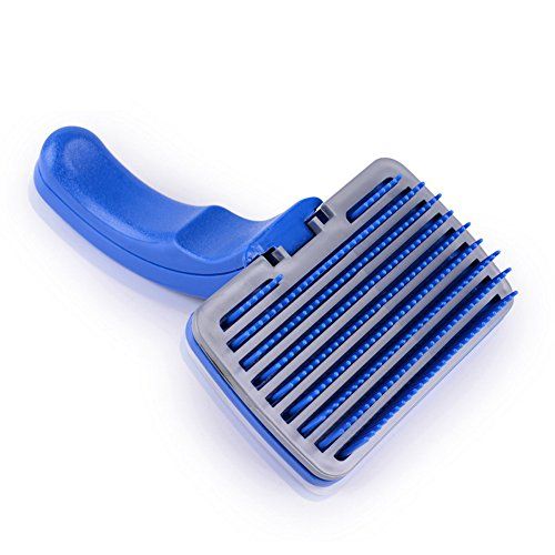 This is such a cool brush! It pulls out loose undercoat nicely and the release button works perfectly. I’ve had the brush for a long time and it still works great – the plastic has not broken nor have the pins rusted. I can’t imagine using a slicker brush without a self-cleaning feature ever again.
