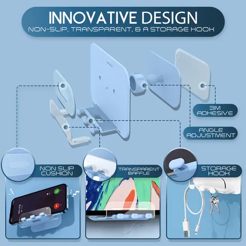 It has a non-slip pad that secures the phone even if it vibrates. Storage hooks can hold your keys, charger, glasses etc. It has a multifunctional design for you to store your belongings. And transparent partition to visualize the entire device screen.