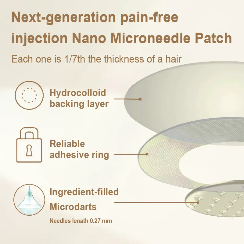This nano-microneedle patch uses advanced Tirzepatide technology to precisely deliver active ingredients deep into the skin. It scientifically regulates insulin secretion. inhibits glucagon. delays gastric emptying. and assists in controlling blood sugar levels. thereby promoting healthy fat loss and optimizing overall health management. At the same time. Matrixyl 3000 can also stimulate skin regeneration and improve skin firmness. allowing users to maintain tight and smooth skin while losing weight.