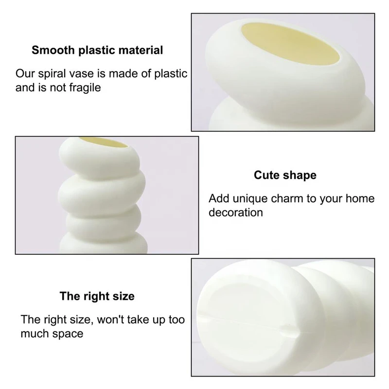 1PC Plastic Spiral White Vase Nordic Creative Flower Arrangement Container For Kitchen Living Bedroom Home Decoration Ornament