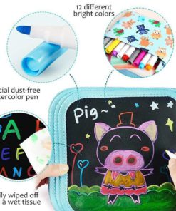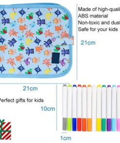 The doodle pad is 8×8 inches in size and has 14 pages, giving 12 watercolor pens. The watercolor pen is colorful, dust-free and non-toxic. After use, wipe it gently with a wet tissue to make it clean and reusable! It can stimulate your child’s imagination. Give it to your child as a gift.