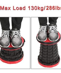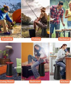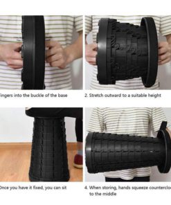 The unique stool fully extends up to 17.9 inches tall and retracts to a compact size of just 2.36 inches thick.