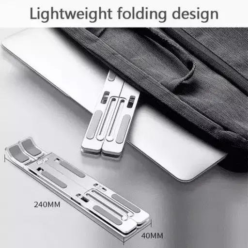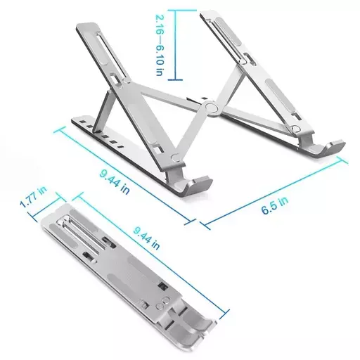 This is a laptop stand that can be folded and does not need to be assembled. It can be carried around. It takes only 1 second to open, also it has 6 heights to support.
