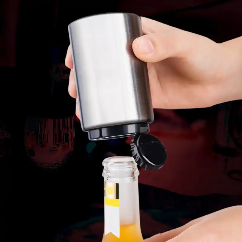 The Magnetic Automatic Beer Bottle Cap Opener opens your beer and other bottles with caps with one easy push and pull!