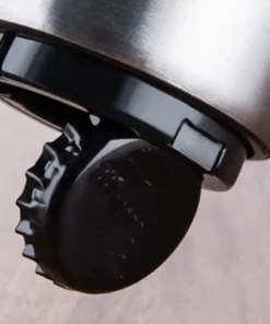 The biggest breakthrough to get rid of the painful feeling of working overtime from using a standard bottle opener when opening a capped bottle. It has a spring-loaded push mechanism that effortlessly opens and releases the lid. Opens the bottle faster than other bottle openers. It’s a great tool to use at a party, especially if people can’t wait to get that bottle of cold beer.