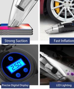 Powerful Vacuum Cleaner and Air Compressor Tire Inflator with LED Light has the following product features: