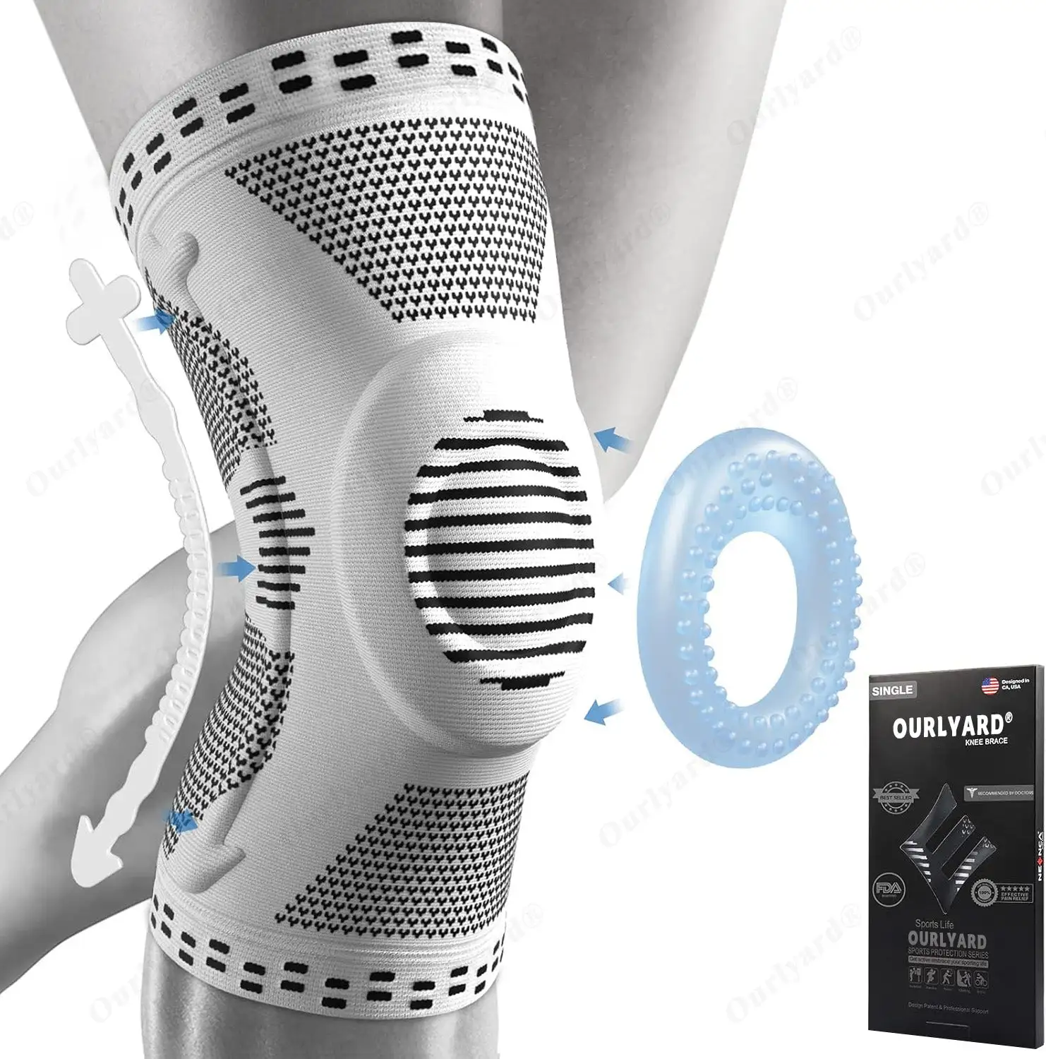 - UPGRADED DESIGN— Adopt the Anti-Inflammatory Therapy, overcome the defects of similar products, medical knee sleeve with no allergies and itchiness. With high-elastic tight breathable compression fabric to fit perfectly with your knee curve, 3D structure of woven, high-precision knitting cutting technology. Side spring stabilizers on both sides and patella gel pad won’t fall off even for long-time using, Anti-slip gel strips avoid slip or roll during exercise, It will stay in place all day!